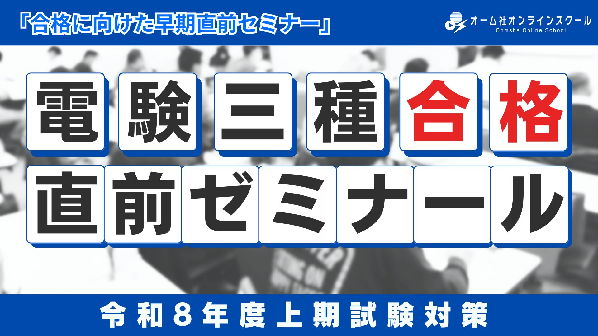 理工学関連の資格取得を目指す学生・社会人を対象とした学習コンテンツ配信サービス「オーム社オンラインスクール」では、3月16日より「電験三種合格 直前ゼミナール –令和8年度上期試験対策–」の販売を開始します。